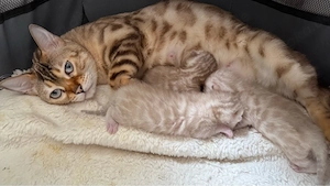Hallöchen, Am 08.04.2026 hat unsere Bengal-Mama drei wunderschöne, weiße (Snow) Kitten zur Welt gebracht , 2 kleine Kater und 1 süßes Mädchen. Die drei sind aktuell erst eine Woche alt und noch ganz am Anfang ihres Lebens. Sie werden bei uns mit ganz viel Liebe großgezogen, umsorgt und an Menschen ...