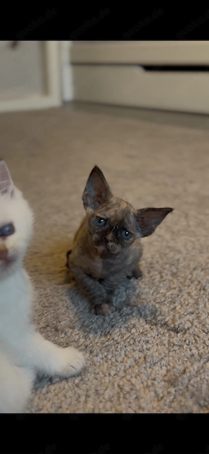 Hallo Ich bin ein Wunderschönes Davon Rex Mädchen. Wir dürfen( Mitte Mai ) in ein liebevolles warmes zur Hause und neu einkuschel . Geimpft: Nein Entwurmt: Ja Die Kätzchen wachsen liebevoll in der Familie auf, sind sehr verspielt, freundlich und menschenbezogen. fressen bereits Trocken- und Nassfutter, sind ...