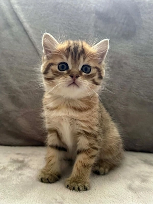 Wunderschönes Britisch Kurzhaar (BKH) Mädchen in golden shaded golden tabby sucht ein neues, liebevolles Zuhause. Geboren am 10.02.2026, aktuell also knapp 2 Monate alt. Sie ist verspielt, neugierig, sehr verschmust und an Menschen gewöhnt. Farbe: golden shaded gold-braun mit schöner dunkler ...