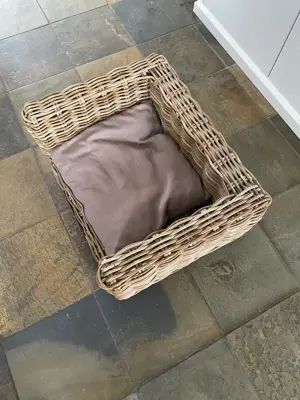 Maße ca. außen: 64 x 50 cm, 31 cm hoch; innen: 44 x 40 cm, 20 cm hoch Mit Einlegekissen. Guter Zustand. Neupreis 149,96 Versand 10 Siehe