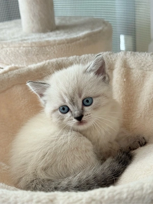 Diese bezaubernden Kätzchen suchen ein liebevolles Zuhause! 3 Weibchen und 1 Männchen. Sie überzeugen mit ihrem unglaublich weichen Fell, den intensiv blauen Augen und ihrem ruhigen, menschenbezogenen Wesen. Die Kleinen wachsen mitten in der Familie auf, sind bestens sozialisiert und an Alltagsgeräusche ...