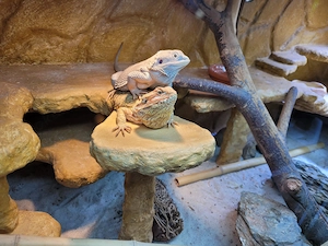 Hallo zusammen,  hat sich leider endlich herausgestellt, dass beide Männchen sind obwohl in jungen Jahren der "orangene" gewunken hat... Dementsprechend muss ich die beiden trennen. Beide sind circa 25cm groß mit Schwanz. Essen gerne Grünzeug und Zophobas morio(Larven des großen Schwarzkäfers). Auf ...