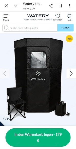 Verkaufe meine Watery Dampfsauna. Gekauft am 21.3.26 kaum benutzt, da kein Platz. Innenhöhe 1,78 m Größ 180 90 90 cm Dampfgenerator 4,2 Ltr. Leistung 2200 W Neupreis 171 + Tragetasche 25 = 196 Abzugeben für 120 an Selbstabholer