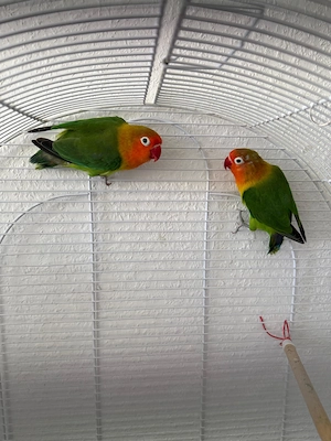 Ich biete zwei wunderschöne, gesunde Unzertrennliche (Zwergpapageien) zusammen mit ihrem Käfig zum Verkauf an. Die beiden sind ein harmonisches Paar und sollten unbedingt zusammen bleiben. Details zu den Vögeln: Art: Unzertrennliche (Agaporniden) Anzahl: 2 Farben: Grün mit orange rotem Kopf ...