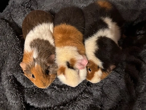 Hier suchen zwei hübsche Meerschweinchen Damen & ein schöner Kastrat ein artgerechtes Zuhause . Die Mädels sind 1 Jahr alt und der Kastrat ist 1,5 Jahre alt die vertragen sich super sie haben bis her immer zusammen gelebt und kennen sich. Eine Glatthaar und US Teddy Dame der Kastrat ist auch ein us Teddy ...