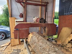 Blockbandsäge, gebraucht. Verkaufe hier meine Blockbandsäge, techn. Daten 8 KW Motor elktro, Stammdurchmesser bis 75 cm, Länge Sägebett 4,50m ( kann problemlos verlängert werden), elktr. Vorschub, elktr, Höheneinstellung. incl. 15 Sägeblätter, Rollenführungen und Kugellager. Die Säge funktioniert einbandfrei. ...