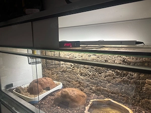 Biete eine Terrarienanlage(2 Terra's und Alugestell) mit den Maßen: Terra"s 120x50x50 Gestell 125x50x155 Ein Becken hat einen Riß in der Decke.Mit Zubehör( Schutzkörbe,Fassungen,Leuchtmittel)275,00