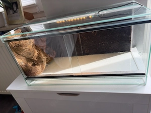 Biete ein Terrarium in den Maßen 60x30x30 (LBH) mit Schiebetüren an, es wurde kurzzeitig für Vampirkrabben verwendet. Hinten befindet sich eine Faserrückwand, diese kann mit Moossporen, Kletterpflanzen etc. bestückt werden oder auch entfernt werden. Wurde mit Acryl fixiert. Links ist ebenfalls eine Faserrückwand, ...