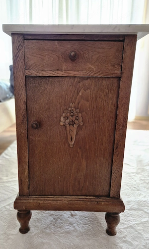 Antiker Nachttisch   Beistelltisch aus Massivholz mit Marmorplatte   Vintage