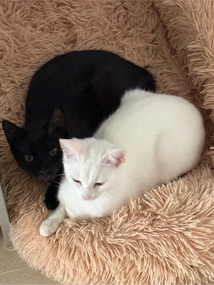 Hallo ihr lieben, Wir sind Lana (weis) und Luna (schwarz) und sind zwei Schwestern auf der Suche nach einem neuen liebevollen Zuhause. Wir werden im Mai ca. ein Jahr alt. Das ca. steht da weil unsere jetzigen Besitzer und draußen gefunden haben und aufgepäppelte haben als wir unsere auch noch nicht ...