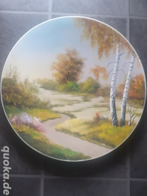 Zum Verkauf steht ein wunderschöner handgemalter Gipsteller mit einem idyllischen Herbstmotiv. Ideal als wanddeko oder Geschenk Details: Material:Gips Technik: Handgemalt Durchmesser: Ca. 54 cm Zustand: Sehr gut