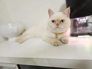 Weibliche Hauskatze, 6 Monate alt, weiß-gold mit blauen Augen. Sehr lieb, verspielt und menschenbezogen. Bei Interesse bitte melden.