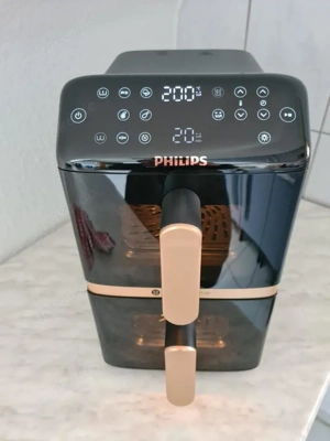 Philips Airfryer NA462 70 - 4000 Series, Stacked Dual Basket, Schwarz Kupfer mit Originalkarton sowie Rechnung. Frittieren, Braten, Grillen, Backen, Fassungsvermögen 10 L (2 5 L). Der Airfryer wurde sehr selten genutzt daher auch in einem Topzustand. Kaufdatum 25.11.2025.