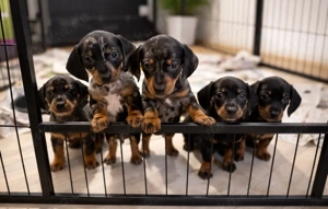 5 Zwergdackel-Welpen suchen ein liebevolles Zuhause Am 05.02. hat unsere Hündin fünf gesunde Zwergdackel-Welpen zur Welt gebracht. Es sind 3 Hündinnen (lila, orange und weiß) und 2 Rüden (grün und blau). Abgabe frühestens ab der 8. Woche Erste Entwurmung mit 2 Wochen, danach regelmäßig alle 14 ...