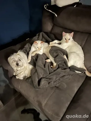 Siamkätzchen der Rasse Red Point, verträglich mit Hunden, Katzen und Kindern. Sie sind anhänglich, sauber und verspielt. Sie sind geimpft, gechippt, mit EU-Heimtierausweis versehen, entwurmt und gegen Flöhe behandelt. Sie sind kastriert. Beim Verlassen des Züchters erhalten sie ein Starterpaket mit ...