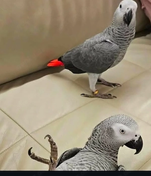 Zwei sprechende Graupapageien (Graupapageien) aus dem Kongo. Sie sind zahm und tierärztlich untersucht. Sie spielen gerne mit anderen Vögeln und Menschen in ihrer Umgebung. Wir suchen ein liebevolles Zuhause für sie.