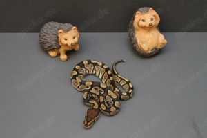 Art: Königspython Morph: Enchi Yellowbelly het Hypo Geschlecht: 0.1 Weibchen Schlupfdatum: 06.2025 Gewicht: ca. 220g Futter: Frostratten Schaut unter "Buxteballs " gern mal bei FB oder Instagram bei uns vorbei!