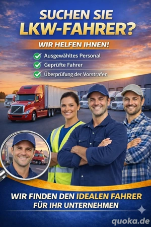 Qualifizierte LKW- und Kühltransporteure für Ihr Unternehmen Wir stellen Ihnen erfahrene Berufskraftfahrer zur Verfügung, die flexibel für nationale und internationale Einsätze sowie Kurz- und Langstrecken verfügbar sind. Geprüfte Fahrerprofile sofort einsatzbereit Führerschein C+E Berufskraftfahrerqualifikation ...