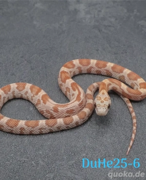 Moin, unsere Jungtiere sind inzwischen futterfest und dürfen nun in ihr neues Zuhause umziehen. Verpaarung: 1.0 Hypo Sunkissed Topaz het. Amel 50% ph. Bloodred Striped X 0.1 Candy Cane het. Sunkissed Cinder Caramel ph. Hypo Anery Geschlüpft am: 21.05- 27.05.2025 DuSi25 9 1.0 Sunkissed Amel het. ...