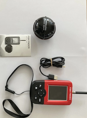 Kugelförmiges Echolot für das Angeln vom Boot oder Ufer; Das Sonar ist kabellos und mit einem Handteil verbunden. Es werden die Wassertemperatur, die Tiefe des Gewässers, Fische und die Wassertemperatur angezeigt. Das Kugelsonar enthält einen aufladbaren Akku.