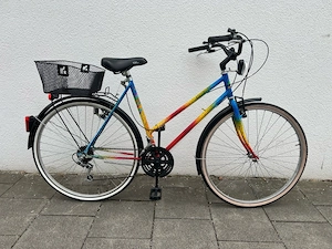 Das Fahrrad ist technisch in einem gutem Zustand und sofort fahrbereit. Es weist lediglich auf geringe Gebrauchsspuren, die bei normaler Nutzung entstehen. Optisch Bunt, gepflegt und sehr zuverlässig. Marke: Active Farbe: Bunt ( Regenbogen ) Rahmengröße: 54 Laufräder: 28 Zoll 3x6 Gang Schaltung Alle ...
