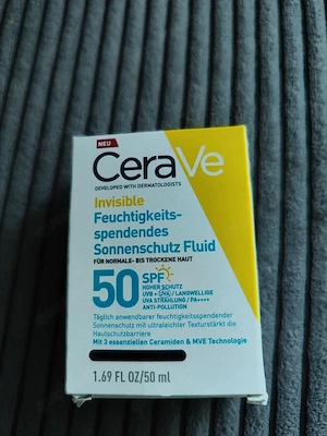 Zum Verkauf habe ich ein Soonenschutzfluid von Cerave... ist neu. CeraVe Invisible Feuchtigkeitsspendendes Sonnenschutz Fluid LSF 50 für normale bis trockene Haut 50 ml CeraVe Invisible Feuchtigkeitsspendendes Sonnenschutz Fluid bietet einen hohen UVA- und UVB-Schutz und schützt die Haut vor schädlichen ...