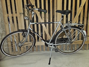 Porsche Bike ST Sonderanfertigung, Schrittmaß 68 cm. Shimano SLX Scheibenbremsen - . Gabel mc-air -MCF, MCV 100mm GU-weiß, Schaltung Shimano XT 3x10 -11-36 mit Deore Kurbel. Reifen 28 Zoll. Neupreis 2200.-