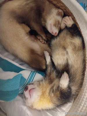 Schweren Herzens trennen wir uns von unseren zwei Frettchen Rüden. Sie sind Wohnungshaltung gewöhnt, fressen Fleisch und ganze Beutetiere, sind Stubenrein und Handzahm. Außerdem kennen sie Katzen, Hunde und Kinder. Da sich unsere Lebensumstände unvorhergesehen verändert haben, sind wir leider nicht ...