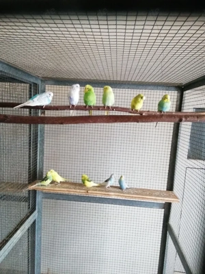 Wellensittiche jung, in vielen Farbvarianten abzugeben. Es sind Volierenvoegel und Jungtiere. Der Preis ist 15 Euro,pro Vogel.