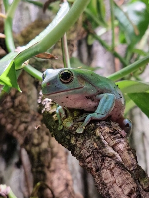 Gebe 1.2 (ein Männchen und zwei Weibchen) Korallenfinger Laubfrösche ab. Der Kerl hat einen schönen braun Ton, ein Weibchen ist hellgrün und das ander Weibchen ist türkis. Sie sind von 2022 und somit Adult. Fressen, wie für die Art bekannt, sehr gut. Verstehen sich alle auch gut miteinander. Nur alle ...