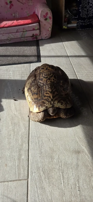 Hallo, Ich möchte aus privaten Gründen meine 2 Pantherschildkröten (männlich,weiblich) abgeben!Habe sie 2007 in Hamm auf der Reptilienmesse gekauft. Papiere sind vorhanden. Männchen 28cm Panzerlänge und 4,2 kg Weibchen 34cm Panzerung und 8,4 kg Tiere sind gesund und aktiv Hatte auch schon Jungtiere,perfekt ...