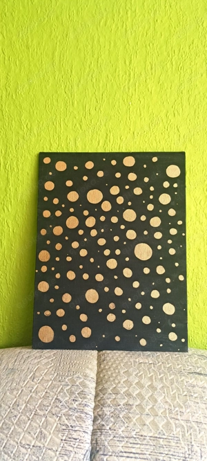 Hallo zusammen! Ich biete hier mein handgemaltes abstraktes Kunstwerk an. Das Bild besticht durch seinen edlen Kontrast zwischen dem tiefschwarzen Hintergrund und den schimmernden goldenen Akzenten. Ein minimalistischer Blickfang, der jedem Raum eine elegante Note verleiht. Details: Stil: Abstrakt ...