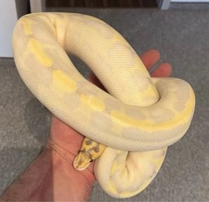 Lemon Blast het. Albino Mädel vom 09.07.2025 aus ENZ abzugeben. Gewicht: 280 Gramm frisst Frostmäuse Mutter: Albino Vater: Lemon Blast het. Albino Kein Tierversand Abholung in 99869 Wechmar