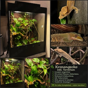 Kronengecko inkl. komplett eingerichtetem Terrarium abzugeben Ich verkaufe meinen wunderschönen Kronengecko inklusive voll ausgestattetem Terrarium. Das Terrarium ist liebevoll und naturnah eingerichtet mit: * echten Pflanzen (Rankpflanzen) * Kletterästen & Naturdeko * strukturierter Rückwand * integrierter ...