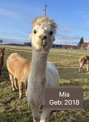 Wir möchten unseren Alpaka Bestand reduzieren, aus diesem Grund müssen wir uns schweren Herzens von ein Paar unserer Alpakas trennen. Zum Verkauf stehen: Nala Geb. Juli 2023 Coco Geb. Juli 2023 Bella Geb. Juni 2025 Alle Tiere sind geimpft, und gechipt Bei Interrese gerne melden Mfg Alfred