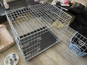 Verkaufen eine Gitter Hundebox (zusammenklappbar) mit herausnehmbarer Wanne. So gut wie nicht gebraucht. Hat 2 Türen (Seite und Vorne). Zusammenklappbar. Guter Rückzugsort für denn Hund Marke Trixie Steht in Rheinfelden Schweiz