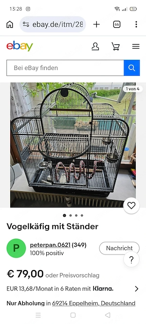 Gebrauchter aber gut erhaltener Vogelkäfig mit Gestell, in gutem Zustand aus gesundheitlichen Gründen ,dringend an Selbstabholer in 69214 Eppelheim zu verkaufen. Da zu gibt es noch reichlich Zubehör, daß im Preis inbegriffen ist. Maße stehen auf dem Foto. Besten Dank für das Interesse