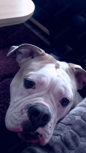 Wegen Umzug muss ich meine Hündin Old englisch bulldogge weggeben.Sie ist 11monate alt,geimpft,gechipt. Sie ist sehr lieb und ist mit Kindern gewohnt.