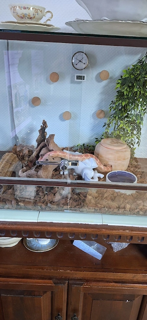 Verkaufe eine 5 Jahre alte Kornnatter mit Terrarium. Ungefähr 1,3-1,5 Meter lang.