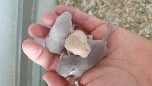 Wir haben fünf süße Rennmaus-Mädchen abzugeben! Die Eltern sind gold und platin, keine Geschwister. Die Kleinen sind am 15.02. geboren, werden von der Mama gut versorgt und können ab April umziehen! 12 EUR pro Tier. Farben: 2x hellgrau, 2x beige, 1x dunkelgrau. Augenfarbe: dunkelrot (Nur Weibchen! ...