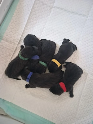 Sie sind sehr verspielt, an Katzen und Alltagsgeräusche gewöhnt und wachsen mit beiden Eltern auf. Beide Elterntiere können vor Ort besichtigt werden. Unsere Hunde leben auf dem Land in einem Haus mit eingezäuntem Garten, zu dem auch die Welpen Zugang haben. Sie sind außerdem an eine Welpenspielmatte ...