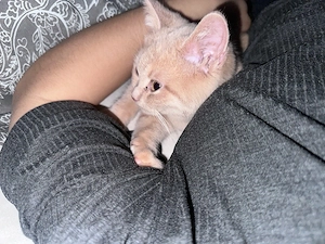 Leider muss ich meinen geliebten kitten abgeben , da mein großer Kater ihn nicht akzeptiert und ständig angreift :( Der kleine kitten (Männchen) liebt es zu schmußen und schnurrt sobald man ihn krault . Er ist 3 smokst und 2 Wochen alt . Er schläft Nachts gerne im Bett..Er frisst Nass und Trockengutter ...
