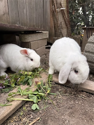 Wir trennen uns schweren Herzens von unserem Kaninchenpaar. Die beiden sind Geschwister und leben ganzjährig im Außengehege. Sie sind Frischfutter und Wiese und Heu gewohnt und fressen auch aus der Hand. Das Männchen ist kastriert. Beide sind 3 Jahre alt. Die beiden werden gemeinsam abgegeben.