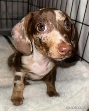 Suchen Sie einen Welpen, der niemals erwachsen wird? Dieser bezaubernde, gescheckte Dackel-Teddy sucht ein liebevolles Zuhause! Mit seinen großen, treuen Augen und dem kleinen Lächeln sieht er aus wie ein echter Welpe. Perfekt zum Kuscheln, als Deko im Kinderzimmer oder als Geschenk für jeden Dack ...