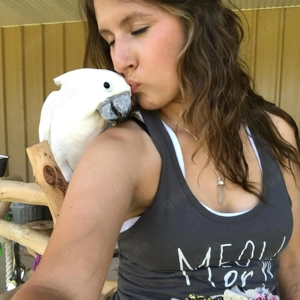 Sie ist 8 Monate alt, gesund und bestens sozialisiert. Durch den täglichen Kontakt mit Menschen ist sie anhänglich, neugierig und menschenbezogen. Sie spricht bereits und kann Wörter und Laute deutlich nachahmen. Ihr Lernpotenzial ist für ihr Alter hervorragend. Papageiendetails: Art: Kakadu Geschlecht: ...