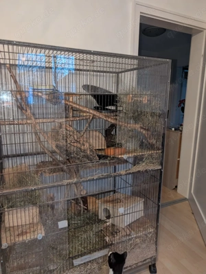 Ich verkaufe hier einen kleintierkäfig, darin haben degus gelebt aber er ist auch für Raten etc geeignet, dazu gibt es reichlich Zubehör wie einen Laufteller etc. Die Etagen müssten erneuert werden da diese sehr angenagt sind, rundherum ist Plexiglas das kein Streu hinausfällt außer oben und an den Türen ...