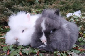 Diese beiden typvollen Löwenköpfchen-Babys suchen ein liebevolles neues Zuhause. Sie sind nun 10 Wochen alt und dürfen ab sofort in ihr neues Heim umziehen. Die Abgabe erfolgt bevorzugt als Paar. Einzelpreis: 50,- Paarpreis: 90,- Geschwisterpaar Rammler Schwarz mit Blesse, blaue Augen Häsin Weiß ...