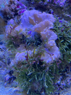 Ohren Muschel weichkoralle Gros mit Mangroven Gras und Riesen großen lebend Gestein . sie kleben auf dem Stein deshalb gebe sie mit . mangoren krass hält das Wasser super sauber wie meins . siehe Foto .