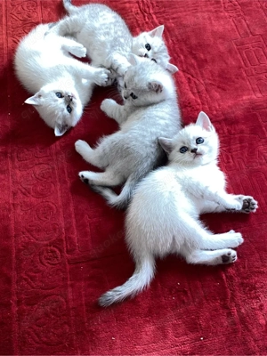 Unsere süßen Britisch Kurzhaar (BKH) Kitten sind am 30.01.2026 geboren und wachsen liebevoll bei uns im Haushalt auf. Sie sind verspielt, neugierig und an Menschen sowie Alltagsgeräusche gewöhnt. Es sind insgesamt 4 Kitten: 1 Weibchen weiß mit Silber-Schimmer 1 Männchen weiß mit Silber-Schimmer ...