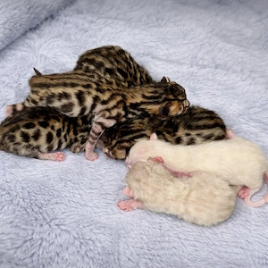 In der vergangenen Nacht durften wir die Ankunft unserer wunderschönen Bengalkätzchen begrüßen! Die Elterntiere stammen aus ausgezeichneter, geprüfter Abstammung und sind gesund, vital und charakterstark. Wir legen größten Wert darauf, dass unsere Katzen nicht nur äußerlich typvoll sind, sondern auch ...